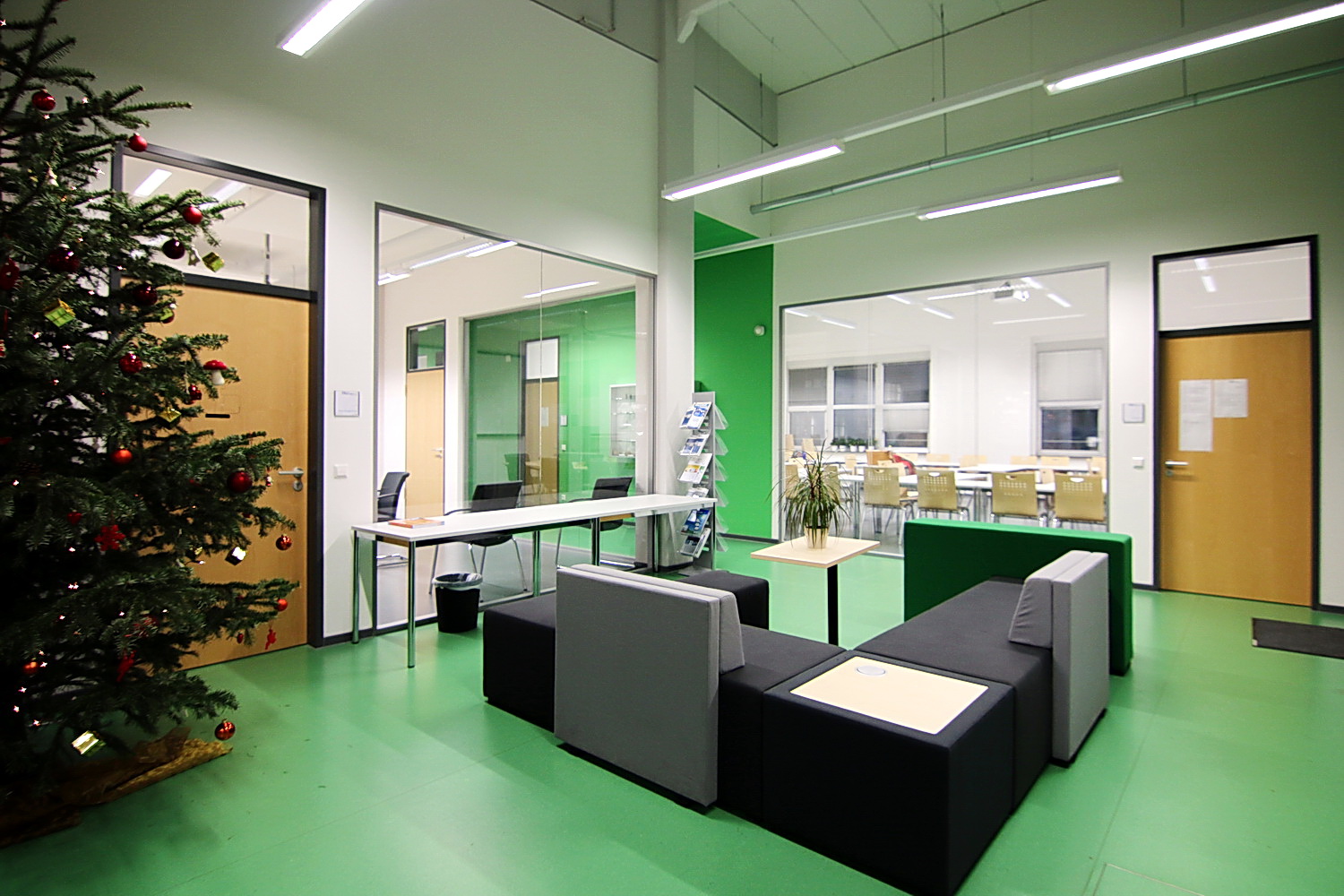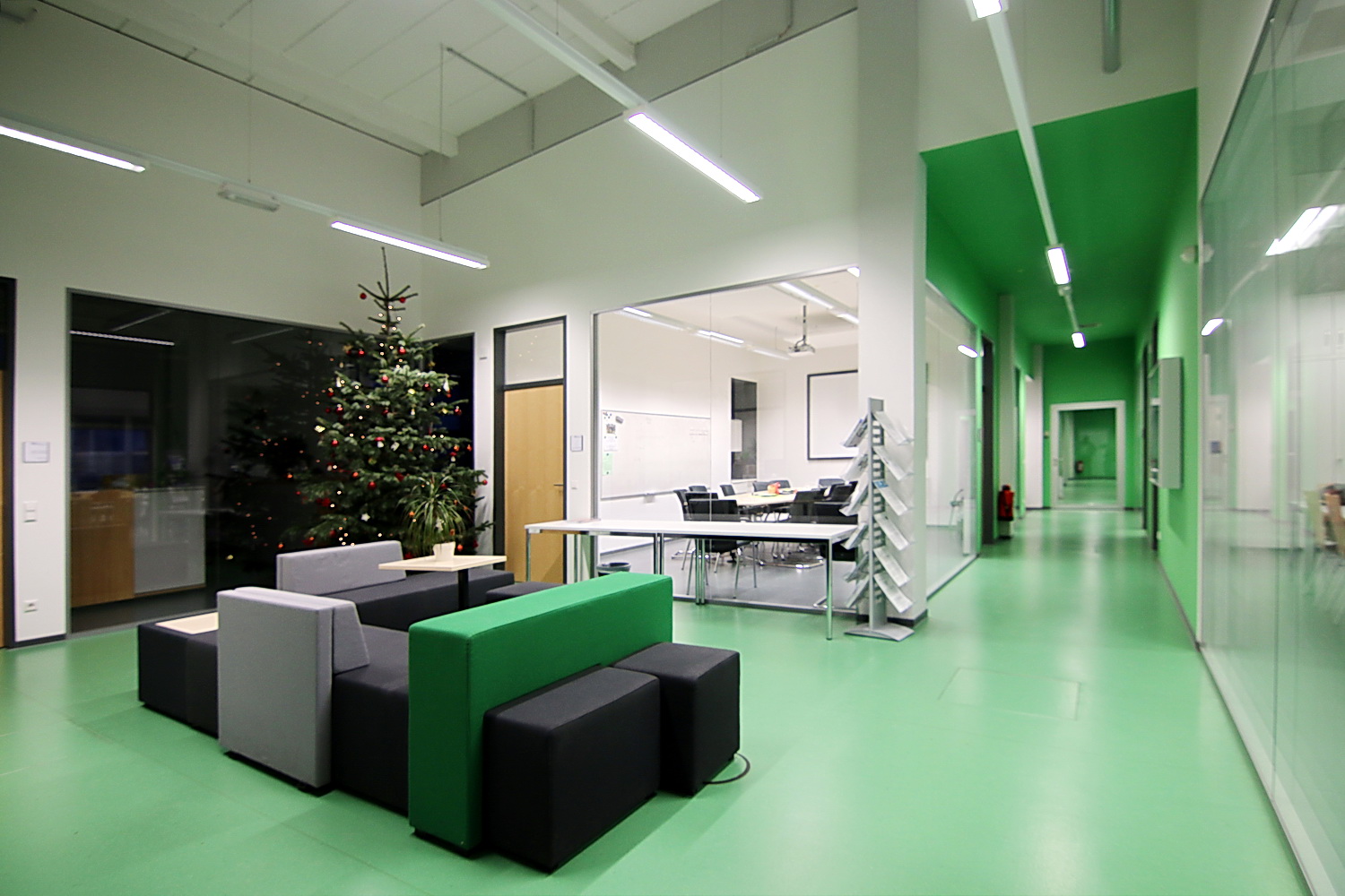 Zu den technischen Räumen des Lehrstuhles war es ebenfalls wichtig, für die Büros und den Lehrbetrieb eine ansprechende Lösung zu finden. Umgesetzt wurde unser Konzept, das einen zentralen Eingangs- und Wartebereich vorsieht, um den sich die Büros, Besprechungsraum und der Seminarraum für den studentischen Betrieb und für Vortragsveranstaltungen anordnen.
