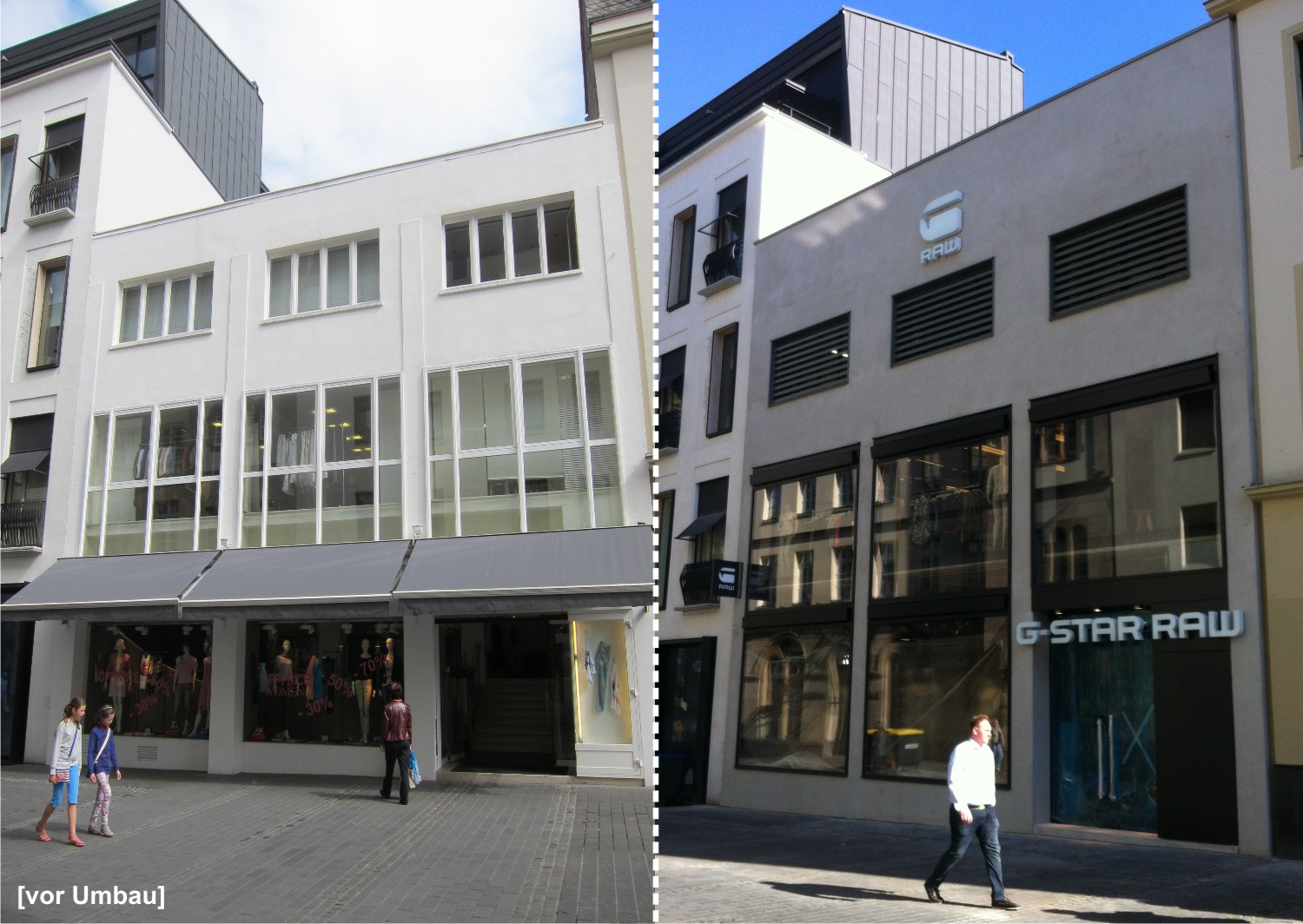 Umbau aller Geschosse und Neugestaltung der Straßenfassade.