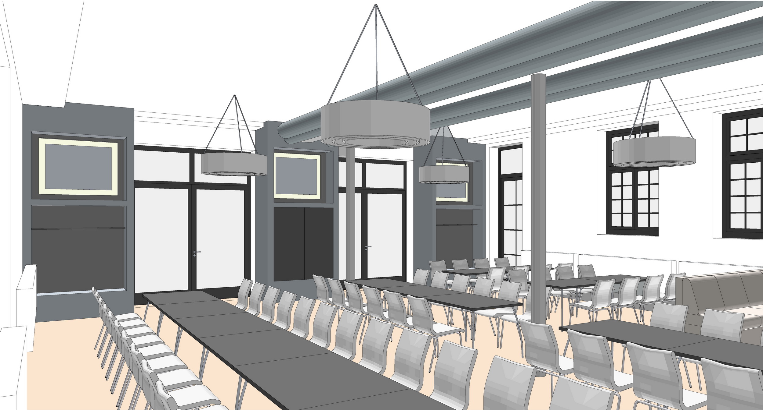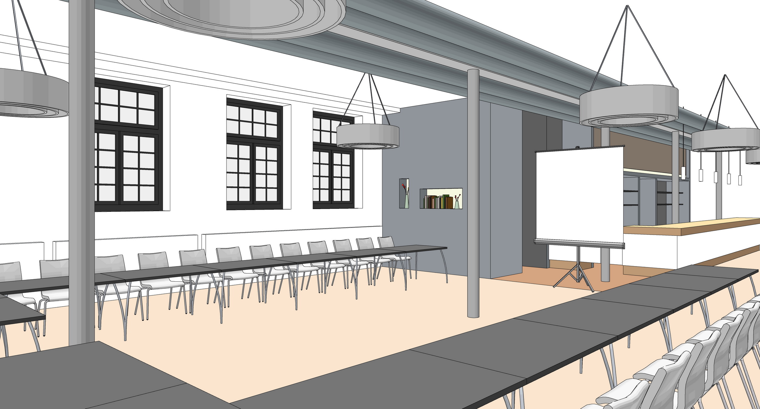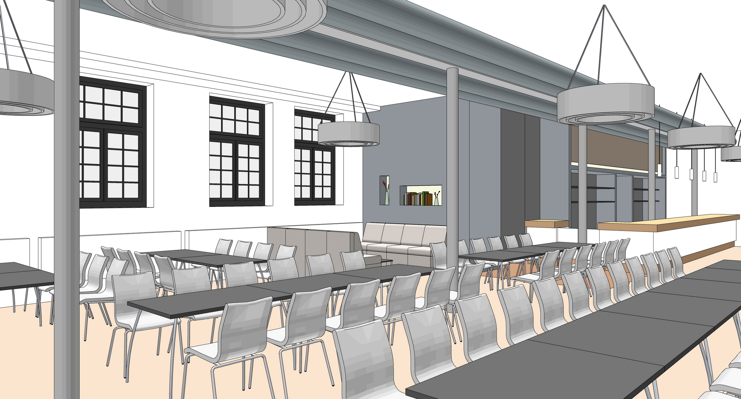Das Konzept für die schönherr Eventkantine zeigt Vorschläge zur Neugestaltung und Modernisierung der bestehenden Räume in der schönherr.fabrik Chemnitz mittels Varianten zu Möblierung, Farbe, Materialität sowie Produktvorschläge zur Beleuchtung und Bestuhlung auf. Wichtiger Themenschwerpunkt der Studie war die Schaffung eines Bezuges der Räumlichkeit zum Ort. Historische Aufnahmen des Areals werden hinterleuchtet inszeniert, textlich beschreiben und integriert in Einbaumöbel, welche als Garderobe oder Schrankraum dienen. Ziel ist es, alle funktionalen Anforderungen der flexiblen Nutzung als Gastronomie- und Veranstaltungsfläche zu erfüllen und darüber hinaus individuelle Details mit Wiedererkennung zu schaffen, die dem Gast in Erinnerung bleiben und die Räumlichkeit mit dem Standort verbinden.
