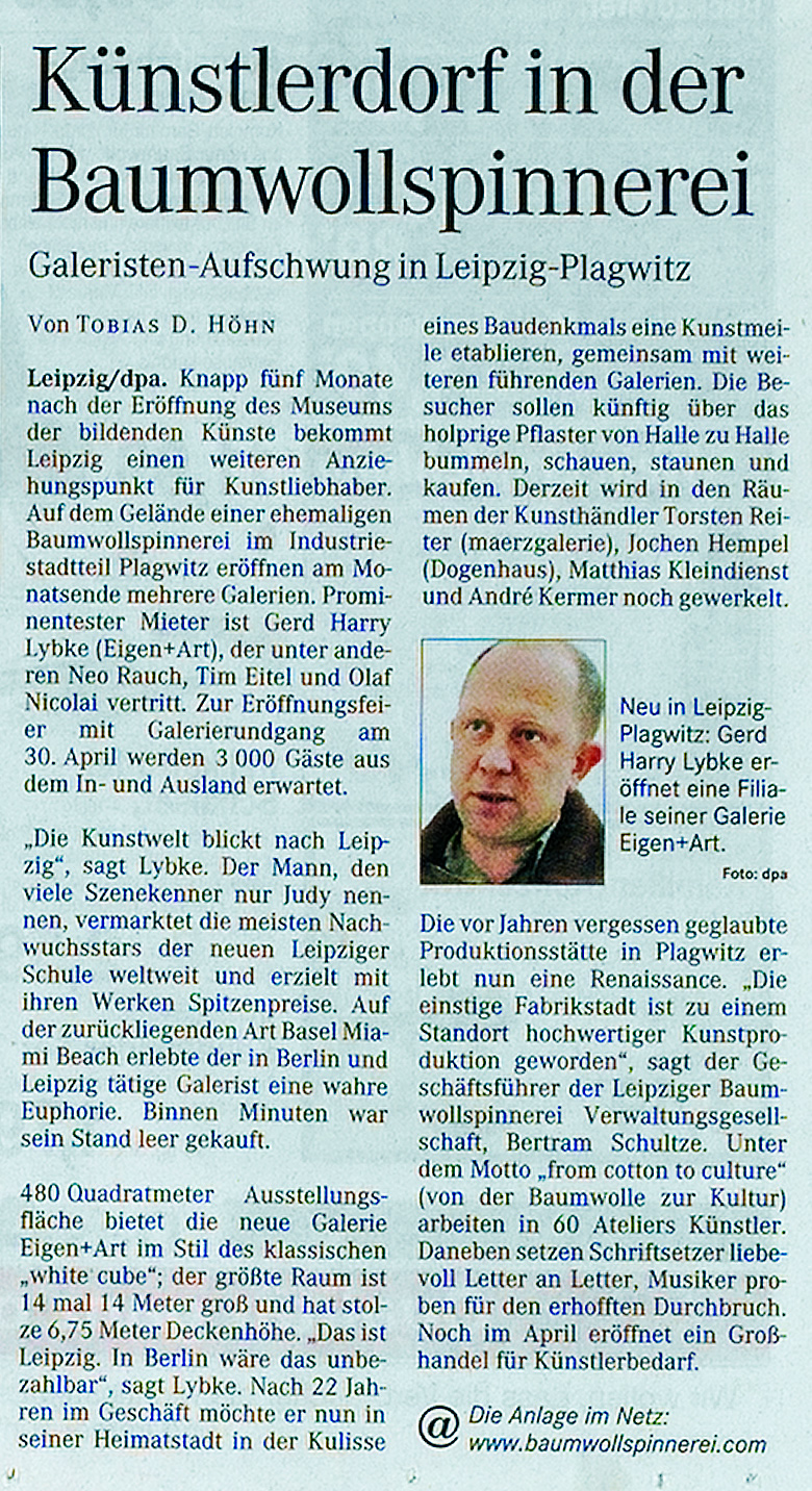 Das Gelände der Leipziger Baumwollspinnerei ist heute als Hotspot für Kunst und Kultur weit über die Grenzen Leipzigs bekannt und wegen den dort ansässigen namhaften Künstlern und Galerien auch international viel beachtet.